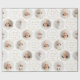 Christmas gift wrapping paper feature modern Merry Christmas script and botanical leaves wreaths, with personalized family name and 6 photos in gold color. simple and elegant.