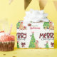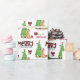 El patrón repetido en este lindo Navidad envolviendo papel es una imagen de un perro de Golden Retriever que usa un sombrero de Papá Noel rojo y blanco. El perro se sienta entre paquetes de regalo envueltos de colores junto a un árbol de Navidad decorado. Un pájaro bullfinch está aterrizando en el árbol detrás. El texto de chapa de búfalo rojo y negro estilizado dice MERRY CHRISTMAS", y su propia firma está en dos campos para que usted lo personalizar.