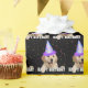 Trato golden retriever con gorra de cumpleaños y confetti colorido sobre fondo negro. El color de fondo se puede editar.