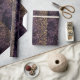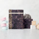 El encaje gótico, el encaje púrpura y dorado sobre un fondo oscuro es un diseño místico, barroco y poco granulado.