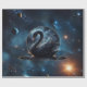 Gracia galáctica: El Cisne Negro. El cisne exuda gracia y dignidad mientras flota suavemente en la superficie lisa de un charco de agua. El agua no sólo refleja la belleza del cisne, sino que también revela su cautivadora reflexión, que se funde armoniosamente con el entorno. El diseño transmite una sensación de calma y grandeza mientras se celebra la belleza de la naturaleza y del universo.