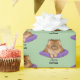 Un gato persa naranja sobre una almohada púrpura real muestra su actitud en un fondo verde