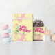 Un cerdo feliz en papel de envoltura de cumpleaños. Utilice "Personalice esta plantilla" para modificar el texto de "¡Feliz Cumpleaños!" y crear un mensaje único y personalizado. Papel con un lechoso cerdo, bajo una tarta de capa tambaleante con azotes de hielo verde y coronado con velas rosas.