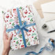 Papel De Regalo Gracioso Giraffe Santa Hat Holly Heart