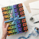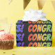 Este divertido y emocionante diseño de papel envolvente incluye el mensaje "CONGRATOS!" con los personajes con un colorante de patrones de gradiente inspirado en el espectro del arcoiris. El papel de envolvimiento como este se puede usar al envolver un regalo de felicitación para alguien, como un regalo de graduación, un regalo de ducha de boda o algún otro tipo de regalo.