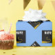 Envoltura creativa para regalo de graduación con tapa de graduación en negro y oro sobre fondo azul claro. Para personalizar el texto de edición para agregar el nombre del año de clase superior y superior. Salud!