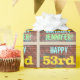 Este divertido diseño de papel de envoltura con temática de cumpleaños incluye un mensaje como "FELIZ 53 cumpleaños, JENNIFER!", donde el nombre puede ser personalizado. El fondo está representado por una pared de ladrillo de ladrillo marrón rojizo. El texto del mensaje de personalizable presenta colores como azul, amarillo y verde, y tiene un aspecto inspirado en el de los graffitis pintados. El envolvimiento de papel como este podría ser usado cuando se le dan regalos de cumpleaños a alguien que está celebrando su cincuenta tercer cumpleaños. [~Z0000274]