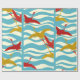 PAPEL DE REGALO GRÁFICAS DE VUELO AMARILLO ROJO EN ONDAS DE MAR AZ