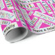 Este papel de envolvimiento de regalo contemporáneo presenta un vibrante patrón multicolor, con palabras recortadas del mensaje 'Ten un cumpleaños totalmente fresco' en un brillante fondo rosa magenta. El patrón dentro de las palabras tiene un colorido efecto graffiti.