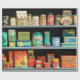 Gran colección de latas vintage coloridas que se muestran en una estantería utilizada como envasado al por menor con publicidad de marca y organizadas de acuerdo con el color, la comestible, la repisa, la exposición, la publicidad, la marca, las marcas, el negocio, el bote, las latas colectivas, la colección, el código de color, el colorido, el comercio, el consumidor, la editorial, la comida, verde, la vintage, el retro, el ilustracion