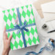 Papel de envoltura diseñado con un patrón de arlequín verde claro y blanco de gran tamaño. Puede cambiar el blanco por otro color de forma sencilla.