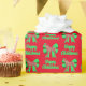 Gran silueta de perro danés con un patrón abstracto de papel de Navidades rojos y arco verde sobre un fondo rojo. Reemplace los Navidades Felices por cualquier cosa que desee. Perfecto XM lindo como papel de perro para regalos mascotas.