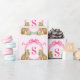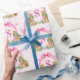 This Christmas gift wrap has a crest with leopards wearing wreaths with a hot pink monogram initial. You can personalize with your initial.