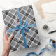 Vintage Farmhouse rústico monocromático patrón de regalo de regalo de regalo de regalo. Patrón de manto tradicional negro, gris y blanco, compuesto por bandas diagonales entrecruzadas. Ideal para los Navidades y para la temporada de vacaciones.