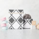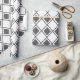 Este papel de envoltura tiene un diseño moderno de mediados de siglo de diamantes grises sólidos dentro de los contornos de diamante gris sobre un campo de blanco.