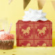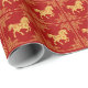 Elegant Chinese New Year wrapping paper featuring golden horse with Greek Ornament Frame on a red color backdrop.