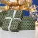 Un espléndido fondo verde con un falso panal de miel de oro se utilizó para crear este elegante papel de envoltura de regalo. Así que bonito para cualquier ocasión del año.