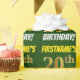 Este diseño de papel envolvente incluye un mensaje como "¡EL CUMPLEAÑOS 20 DE FIRSTNAME!", en el que el "vigésimo" tiene un aspecto de color falso/imitación de color dorado, y con el nombre y el "CUMPLEAÑOS" en un tipo de letra divertido y audaz. El nombre se puede personalizar y el fondo es de color verde. El envolvimiento de papel como este podría ser usado cuando se le dan regalos de cumpleaños a alguien en celebración de su vigésimo cumpleaños. [~Z0000208]