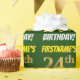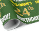 Este diseño de papel envolvente incluye un mensaje como "¡CUMPLEAÑOS 24 DE FIRSTNAME!", con el "24º" con un aspecto de color falso/imitación de color dorado, y con el nombre y el "CUMPLEAÑOS" en un tipo de letra divertido y audaz. El nombre es personalizable y el fondo es verde. El envolvimiento de papel como este podría ser usado cuando se le dan regalos de cumpleaños a alguien en celebración de su 24 cumpleaños. [~Z0000208]