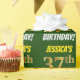 Este diseño de papel envolvente incluye un mensaje como "¡EL CUMPLEAÑOS 37 DE JESSICA!", en el que el "37" tiene un aspecto de color falso/imitación de color dorado, y con el nombre y el "CUMPLEAÑOS" en un tipo de letra divertido y audaz. El nombre se puede personalizar y el fondo es de color verde. El envolvimiento de papel como este podría ser usado cuando se le dan regalos de cumpleaños a alguien en celebración de sus 37 años. [~Z0000208]