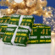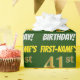 Este diseño de papel envolvente incluye un mensaje como "¡CUMPLEAÑOS 41 DE PRIMER NOMBRE!", en el que el "41" tiene un aspecto de color falso/imitación de oro, y con el nombre y el "CUMPLEAÑOS" en un tipo de letra divertido y audaz. El nombre se puede personalizar y el fondo es de color verde. El envolvimiento de papel como este podría ser usado cuando se le dan regalos de cumpleaños a alguien en celebración de su cuarenta primer cumpleaños. [~Z0000208]
