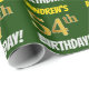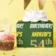 Este diseño de papel envolvente incluye un mensaje como "¡54º CUMPLEAÑOS DE ANDREW!", en el que el "54º" tiene un aspecto de color falso/imitación de color dorado, y con el nombre y el "CUMPLEAÑOS" en un tipo de letra divertido y audaz. El nombre es personalizable y el fondo es verde. El papel envuelto como este podría ser usado cuando se le dan regalos de cumpleaños a alguien en celebración de sus cincuenta y cuatro años. [~Z0000208]