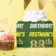 Este diseño de papel envolvente incluye un mensaje como "¡FIRSTNAME’S 88th BIRTHDAY!", con el "88th" con un aspecto de color falso/imitación de oro, y con el nombre y "BIRTHDAY" en un divertido y audaz tipo de letra. El nombre es personalizable y el fondo es verde. El envolvimiento de papel como este podría ser usado cuando se le dan regalos de cumpleaños a alguien en celebración de sus ochenta y ocho años. [~Z0000208]