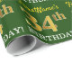 Este diseño de papel envolvente incluye un mensaje como "¡El cumpleaños número 34 de FirstName!", mientras que el "34" tiene un aspecto de color falso/imitación dorado. El nombre se puede personalizar y el fondo es de color verde. Tal vez podría ser usado cuando se envuelven regalos para el cumpleaños 34 de alguien. [~Z0000179]
