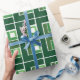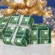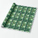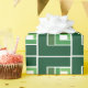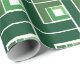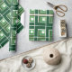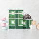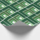 Este papel de envoltura tiene un diseño geométrico hecho de Ls en tonos verdes colocados en diferentes direcciones repitiendo a lo largo del diseño.