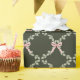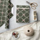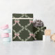 Este bonito papel de envolvimiento muestra un delicado y elegante patrón con motivos verdes entrelazados dispuestos en una rejilla de entramado. Cada cruce del entramado se complementa con una suave proa rosa.