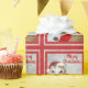 Navidades de Greyhound -un hombre de la cabeza rojo y un galgo blanco vestido con un sombrero de Santa y un collar rojo ambientado en un fondo de nieve gris plateado. Enmarcado con un marco cuadrado rojo. Feliz Navidad con el tipo de letra rojo se puede personalizar con tu mensaje.
