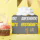 Este diseño de papel envolvente incluye un mensaje como "¡PRIMER CUMPLEAÑOS DE FIRSTNAME!", en el que el "primero" tiene un aspecto de color falso/imitación dorado, y con el nombre y el "CUMPLEAÑOS" en un tipo de letra divertido y audaz. El nombre se puede personalizar y el fondo es gris (gris). El envolvimiento de papel como este podría ser usado cuando se le dan regalos de cumpleaños a alguien en celebración de su primer cumpleaños. [~Z0000211]