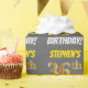 Este diseño de papel envolvente incluye un mensaje como "¡EL CUMPLEAÑOS 36 DE STEPHEN!", con el "36" con un aspecto de color falso/imitación dorado, y con el nombre y el "CUMPLEAÑOS" en un tipo de letra divertido y audaz. El nombre se puede personalizar y el fondo es gris (gris). El envolvimiento de papel como este podría ser usado cuando se le dan regalos de cumpleaños a alguien en celebración de su 36º cumpleaños. [~Z0000211]