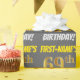 Este diseño de papel envolvente incluye un mensaje como "¡CUMPLEAÑOS 69 DE NOMBRE PRIMERO!", con el "69" con un aspecto de color falso/imitación de color dorado, y con el nombre y el "CUMPLEAÑOS" en un tipo de letra divertido y audaz. El nombre es personalizable y el fondo es gris (gris). El papel envuelto como este podría ser usado cuando se le dan regalos de cumpleaños a alguien en celebración de sus sesenta y nueve años. [~Z0000211]
