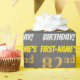 Este diseño de papel envolvente incluye un mensaje como "¡CUMPLEAÑOS 82 DE PRIMER NOMBRE!", en el que el "82" tiene un aspecto de color falso/imitación de oro, y con el nombre y el "CUMPLEAÑOS" en un tipo de letra divertido y audaz. El nombre se puede personalizar y el fondo es gris de color (gris). El envolvimiento de papel como este podría ser usado cuando se le dan regalos de cumpleaños a alguien en celebración de su 82° cumpleaños. [~Z0000211]