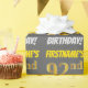 Este diseño de papel envolvente incluye un mensaje como "¡EL CUMPLEAÑOS 92 DE FIRSTNAME!", en el que el "92" tiene un aspecto de color falso/imitación de color dorado, y con el nombre y el "CUMPLEAÑOS" en un tipo de letra divertido y audaz. El nombre se puede personalizar y el fondo es gris (gris). El envolvimiento de papel como este podría ser usado cuando se le dan regalos de cumpleaños a alguien en celebración de su cumpleaños noventa. [~Z0000211]