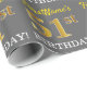 Este diseño de papel envolvente incluye un mensaje como "¡51º CUMPLEAÑOS!", y el "51º" tiene un aspecto de color falso/imitación dorado. El nombre se puede personalizar y el fondo es gris (gris). Tal vez podría ser usado cuando se envuelven regalos para el primer cumpleaños de alguien. [~Z0000185]