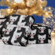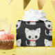 Un gatito gris con corbata de polika dot sobre fondo negro. El color de fondo se puede editar.
