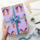 happy Halloween cute ghost and scary skull wrapping paper ,modern purple and brown white Halloween groovy bow ribbon wrapping paper.