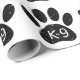 Un lindo estilo personalizado de la huella de la pata del perro y el texto con un efecto grunge y angustiado aplicado a la imagen. Papel de envoltura personalizado con tema K9. Embalaje y decoración de regalo.
