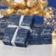 Papel De Regalo Guión azul y blanco feliz Navidad