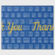 El texto grande de visualización dice 'Gracias' en guión dorado falso (no de hoja metálica). (Si lo desea, puede editar el texto para mostrar un mensaje personalizado). Reemplace el archivo de logotipo de visualización con el logotipo de su empresa. Su logotipo aparecerá en un patrón en papel de regalo azul profundo. Azul profundo es hexadecimal #004095.