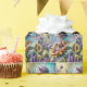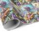 Un fantástico hada con pelo púrpura espinoso y grandes perchas de sol sobre un girasol vibrante