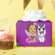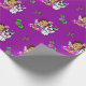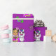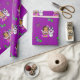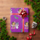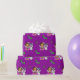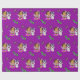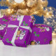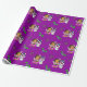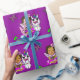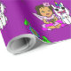 Un hermoso hada de arte folclórico dibujada a mano con un envoltorio de regalo de vestido morado para el cumpleaños de una niña. Rubia morada, lavanda. El pequeño hada es de piel más oscura para representar a chicas hispanos o afroamericanos.