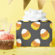 Un ilustracion de un lindo personalizado de maíz de dulce de halloween para truco o tratamiento. Este diseño de dulces naranjas, amarillos y blancos es una idea de regalo para los niños que adoran la fiesta de halloween.
