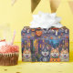 Los perros esquimales norteamericanos adorables vestidos con juguetones disfraces de Halloween llevan baldes de calabaza mientras truco o truco bajo el cielo iluminado por la luna. Este diseño festivo resalta el blanquecino abrigo de la raza, los ojos brillantes y el espíritu animado, capturando a la perfección la atmósfera espeluznante y divertida de la noche de Halloween. Una deliciosa celebración para los amantes del perro y los fans de Halloween por igual.