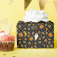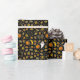 Creative Halloween or October birthday gift wrap or party decor featuring ghost, witch, pumpkin, bat, spider and trick-or-treat candy pattern art.