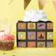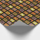 Cute Halloween gift wrap or party decor paper featuring ghosts, bats, spiders, trick-or-treat candy, moons and witch hats.