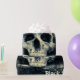 Calavera blanca sobre el fondo negro u oscuro. El texto Black Spot debajo del cráneo en la esquina inferior derecha del diseño. Una especie de papel envolvente de personalizable. Puede cambiar la imagen y puede cambiar o eliminar el texto de la plantilla. A los piratas se les presentó un Black Spot para pronunciar oficialmente un veredicto. Diviértete y Feliz Halloween.