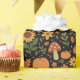 A decorative and cozy fall pattern! This cute design is hand drawn and digitally illustrated, featuring a charming medley of pumpkins, sunflowers, leaves, and mushrooms on a stylish black background. It perfectly captures a charming woodland harvest look with a vintage-inspired, rustic texture.